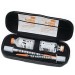 Discreet yet stylish. handy carrying case available for transporting insulin and syringes. simulates a designer eyeglass case. made of lightweight aluminum with a fitted insert that holds two vials of insulin, two syringes and alcohol swabs. also c