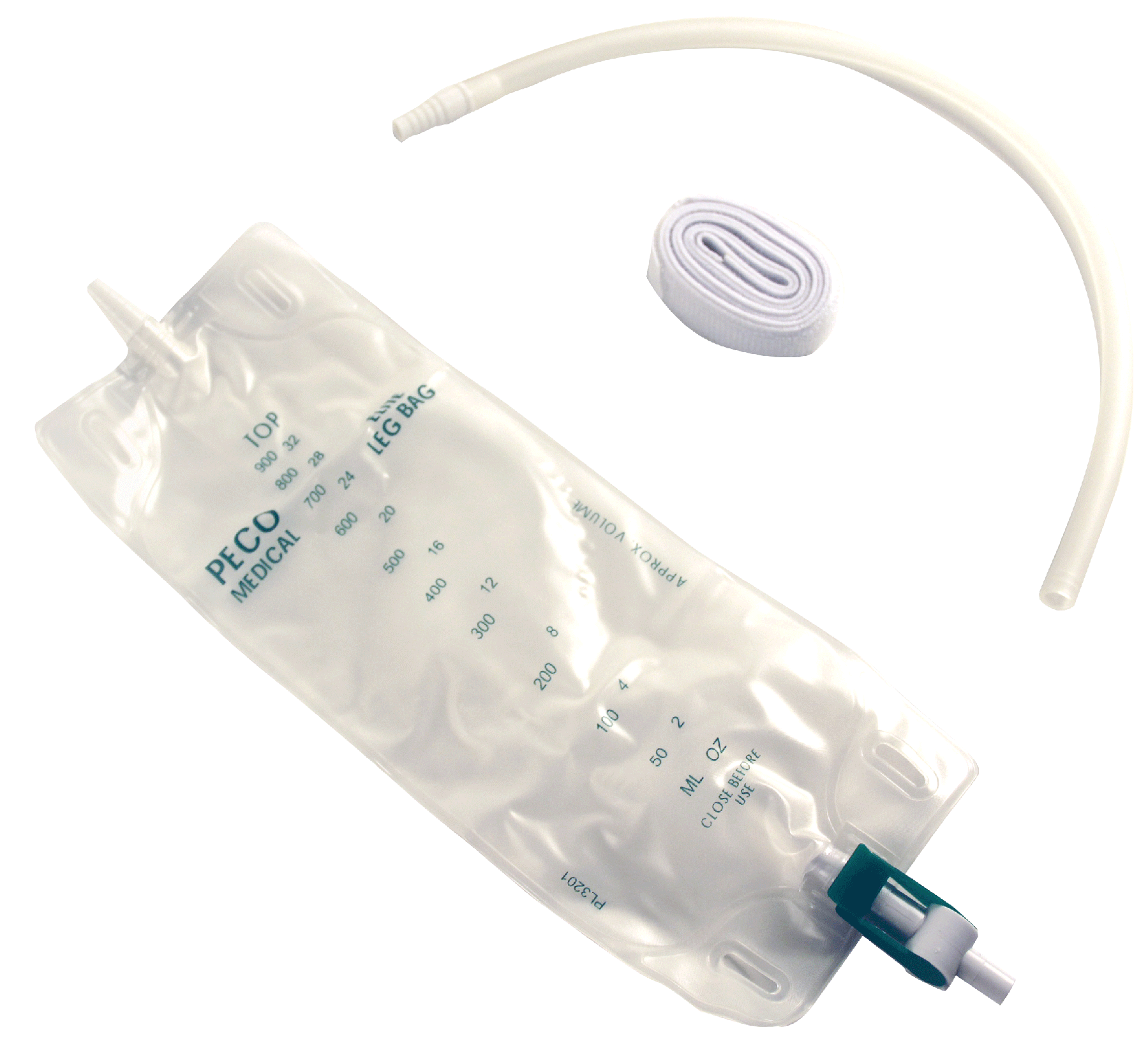 PECO Elite Leg Bag, medium 19oz, flip valve fabric leg straps & extension tube