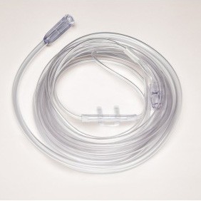 Adult nasal cannula, conventional style with 7' supply tube, 3 channel safety tubing. Latex-free. Non-flared tips.