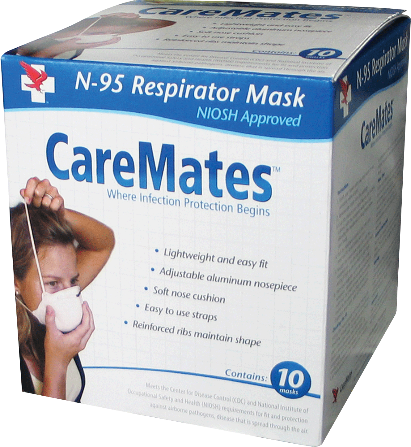 CareMates Cone Style N95 Mask, Air Purifying Respirator, Lightweight, Adjustable, Cushioned, Convenient Flat-fold Design.