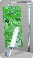 Safe-t-loc pole bag flat top piston syringe with small tube adapter. Antibacterial. Non-sterile. 60cc.