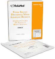 "ReliaMed Foam Dressing with Film Backing. Highly absorbent and conformable hydrocellular foam dressings are ideal for moderately to heavily exuding wounds. Extra-soft, small pore foam minimizes lateral wicking of wound exudate. Nonadherent. Sterile, 6"" x 6"", Each"