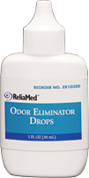Cardinal Health Essentials ostomy odor eliminator drops. Powerful formula provides hours of odor protection. Convenient to use; place a few drops into the pouch prior to attachment. Blue color provides a visual indication of surface coverage. 1 oz. Bottle, Non-Sterile, Each