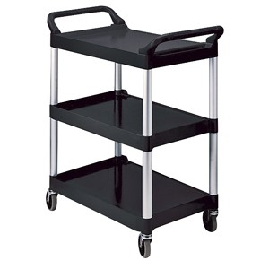 3 Shelf Plastic Utility Cart, Black. 200 lb. weight capacity.