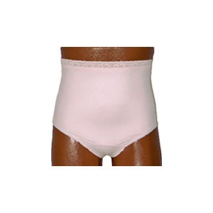 Ladies Basic with snap closure, small, right, soft pink. Supports weight of contents, which relieves pull on stoma seal and prevents leakage, burning and itching. Protects and eliminates pull on adhesive seal of wafer-extending wear time of wafer. Fits all manufacturers' pouching systems. Prevents ballooning. Absorbs moisture, preventing rashes and skin breakdown from pouch and wafer. Prevents feeling pouch, heat or tail closure. Reduces pouch rustle. Easy access for intimacy.