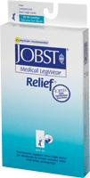 Relief thigh high with silicone band, 20-30 mmhg, open toe, extra large, beige.