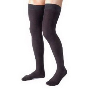 Men's Thigh-High Ribbed Compression Stockings Small, Black, Closed Toe, Latex-free
