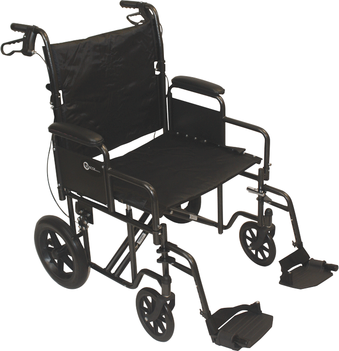 Heavy Duty Steel Transport Chair with Loop-Style Brakes, 22"