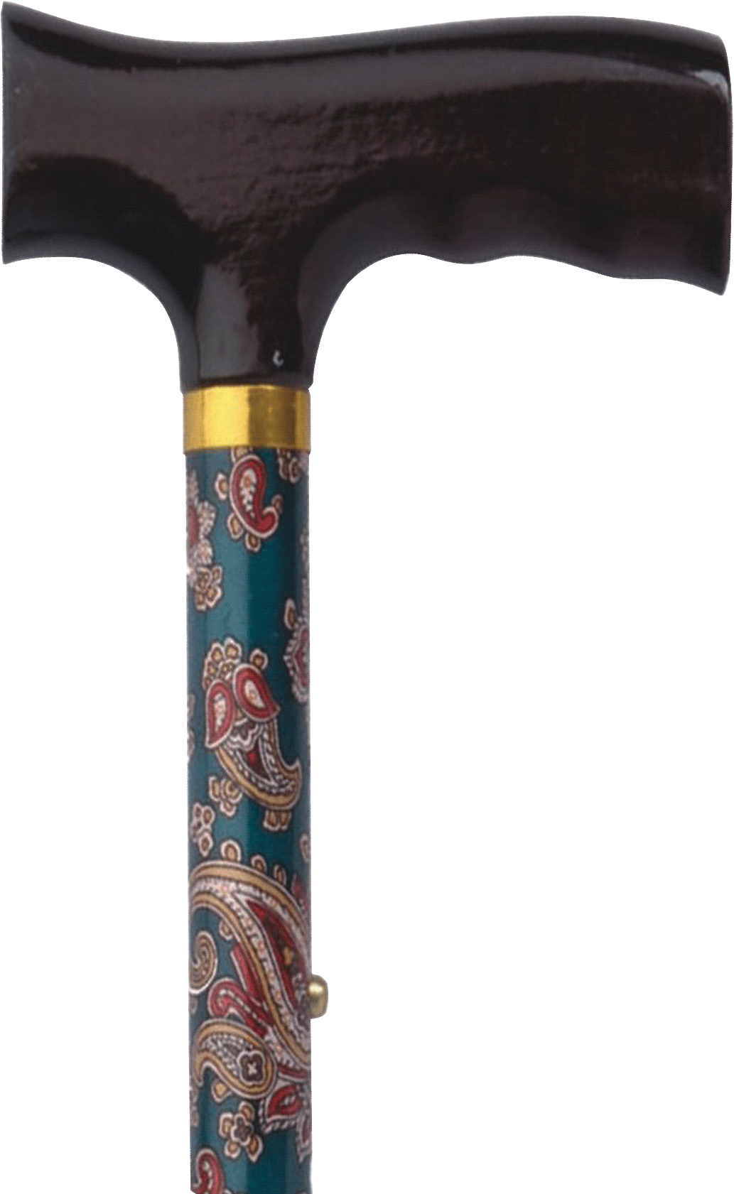 Travel Folding Cane, Green Paisley, 33" - 37" Adjustable Height, Aluminum, Double Cord System, 250 lb. Weight capacity