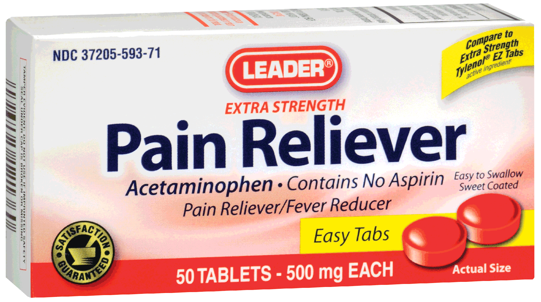 Leader Extra-Strength Pain Relief Easy Tabs, 500 mg (50 Count)