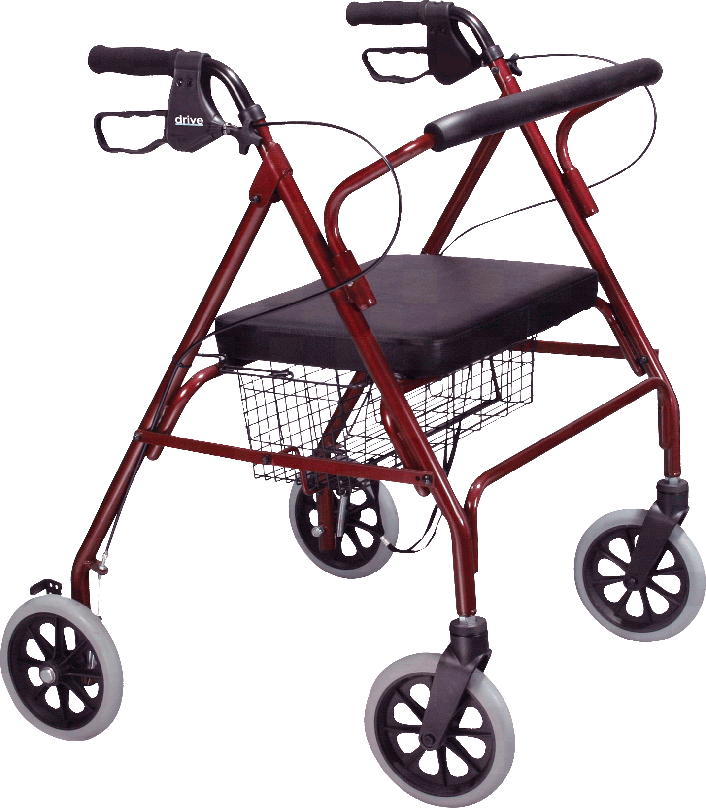 Go-Lite Bariatric Steel Rollator, Padded Seat, Red