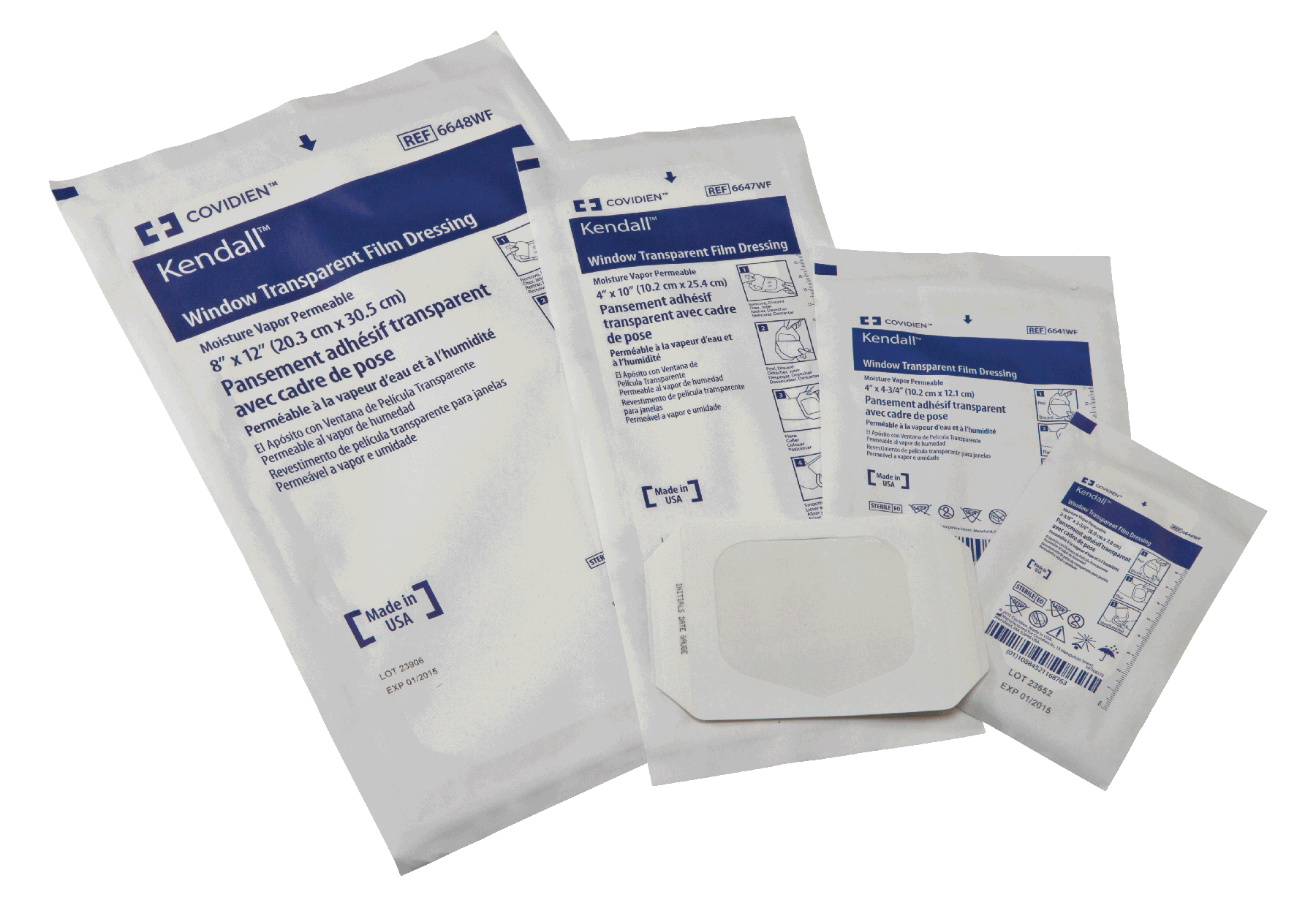 "Kendall window transparent film dressing, 8"" x 12"" sterile."
