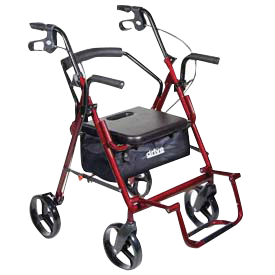 "Duet Rollator/Transport Chair Burgundy, 26"" L x 25-1/2"" x 37"" , 8"" Casters, 300 lb Weight Capacity"