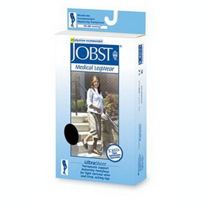 Large, classic black ultrasheer maternity stockings, 20-30mmhg compression. Has an extended tummy panel. Gradient compression for relief and prevention of venous disease. Machine washable