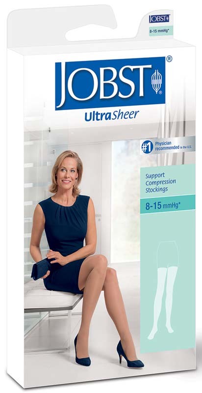 Jobst ultrasheer thigh high, 8-15 compression, x-large, silky beige.