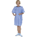 Tieback patient gown, blue marble, one size fits all. Traditional tie-tape closures along a centered back opening. 50/50 cotton/poly.
